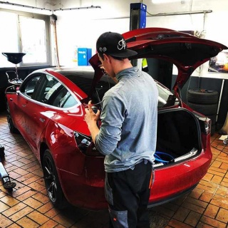 Hier bin ich nun: Spezialist für TESLA, mit einem Auszubildenen und einem Assistenten – Standortpartner für Nextmove und Einbaupartner für AMPTech und EMDS.